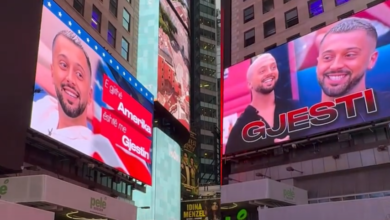 “E gjithë Amerika është me Gjestin”, fotografia e reperit nga Peja shfaqet në zemër të New York’ut