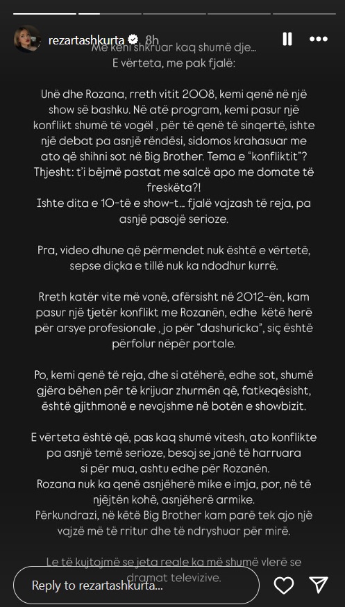 Ajo ka reaguar në mënyrë publike në Instagram, duke hedhur dritë mbi atë që sipas saj ka ndodhur realisht me Rozanën.