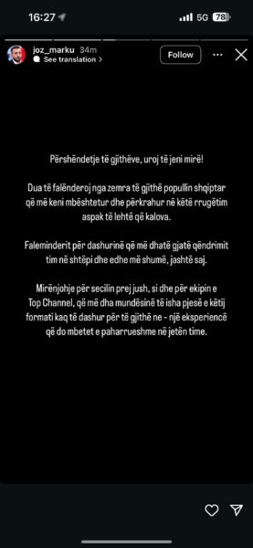 Në një reagim në Instagram, ai thotë se në këtë format u fut për të luajtur “fort”, por se të paktë kanë qenë ata që e kanë kuptuar lojën e tij dhe “vërtetësinë” e tij.
