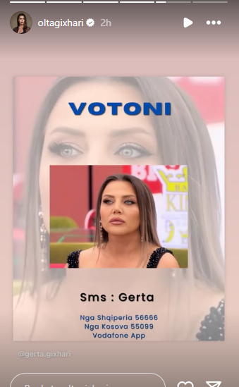 Pasi Gerta është në nominim aktorja ka kërkuar nga ndjekësit që të votojnë për të qëndruar në shtëpi.