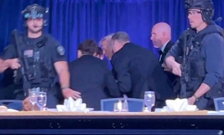 Pamjet që po qarkullojnë në internet kapin momentet e tensionit të lartë pranë sallës së vallëzimit në Hotelin Hilton në Uashington, ku po zhvillohej Darka e Korrespondentëve të Shtëpisë së Bardhë.