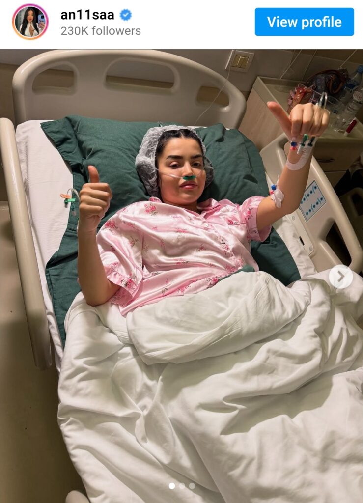 Në një postim emocional në Instagram, ajo ka publikuar një foto nga shtrati i spitalit, ku shihet e buzëqeshur dhe me duart lart në shenjë force, duke treguar se e ka kaluar me sukses këtë sfidë të madhe shëndetësore.