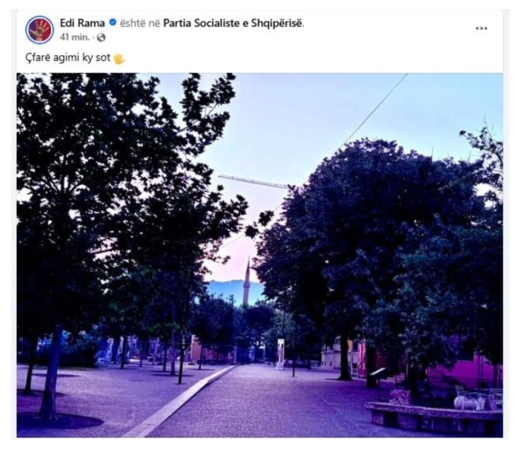 “Çfarë agimi ky sot”, shkruan Rama, ndërsa e shoqëron dhe me një imazh të dorës dhe numrit 5, numër i cili ishte ai që përfaqësonte këtë forcë politike në fletën e votimit të 11 Majit.