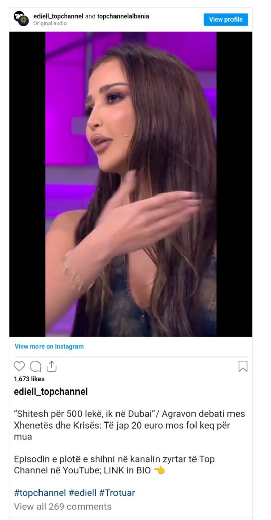 Nga ana tjetër, Krisa nuk e la pa përgjigje dhe iu kundërpërgjigj ashpër Xhenetës me fjalët: “Shitesh për 500 lek, ik në Dubai!”.