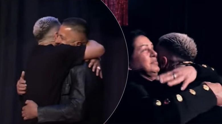 Gjatë spektaklit të mbrëmshëm, një moment tejet emocionues ndodhi kur Gjesti pati mundësinë të takonte babain dhe nënën e tij.
