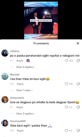 Njëjtë kanë aluduar edhe nëpër komente, se ajo i ka thënë Gjestit t’i bëjë të fala Eglit.