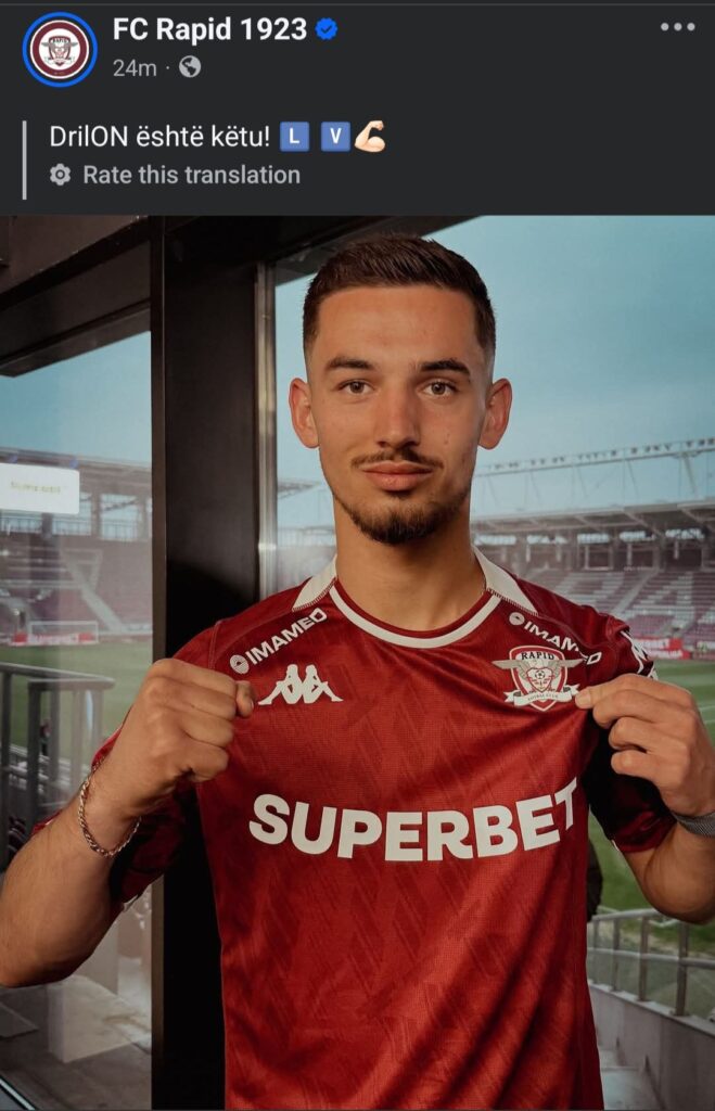 Gjiganti rumun Rapid Bukureshti përmes një njoftimi në rrjetet sociale kanë bërë me dije transferimin e Drilon Hazrollajt.